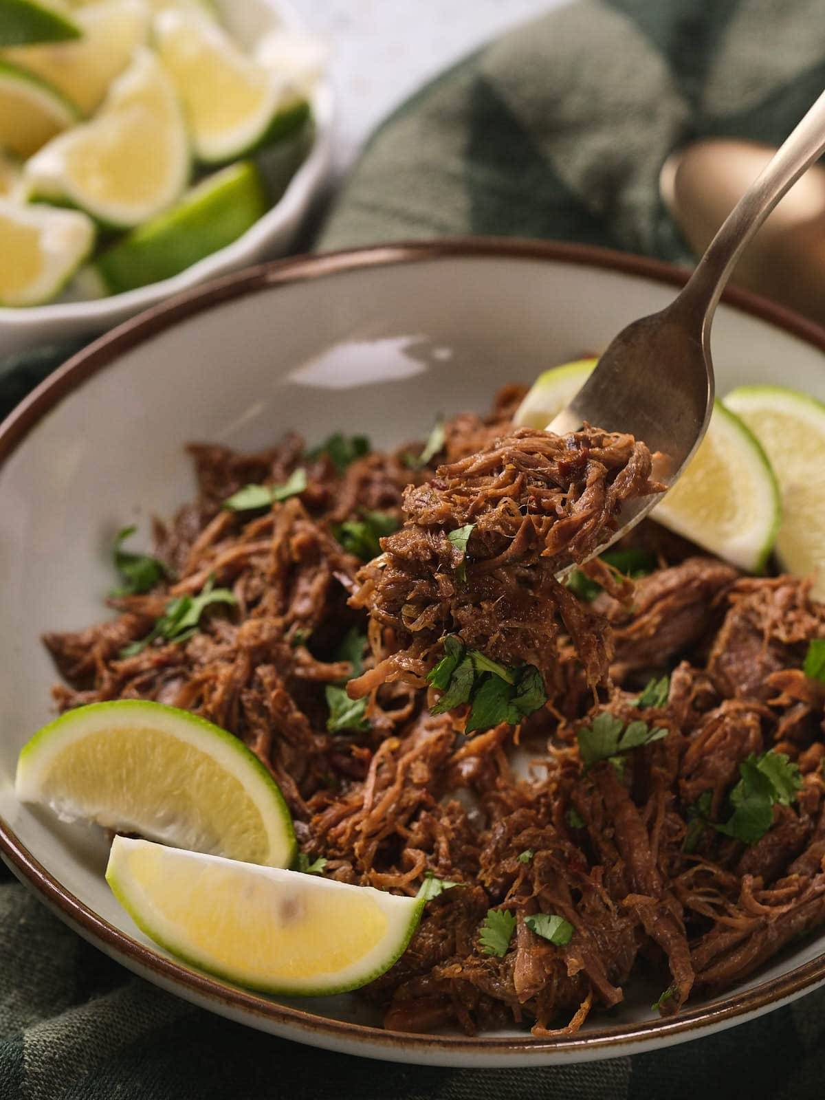 Serve the beef barbacoa with warm corn or flour tortillas, Mexican rice, and black or pinto beans. For something lighter or low-carb, pile beef barbacoa onto cauliflower rice, in cauliflower tortillas, lettuce wraps, or over a fresh cabbage slaw. It’s also fantastic in burrito bowls!